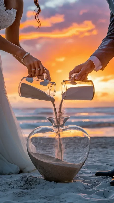 After exchanging your vows, both of you can pour sand from separate containers into one, symbolizing your new marriage in a beautiful, tangible way. I really love this idea.