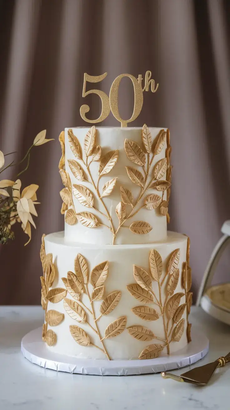 Gold leaf accents symbolize enduring love, making them the perfect choice for milestone anniversaries like the 50th. Pair this with a white or cream base for a sophisticated look that feels both timeless and luxurious.