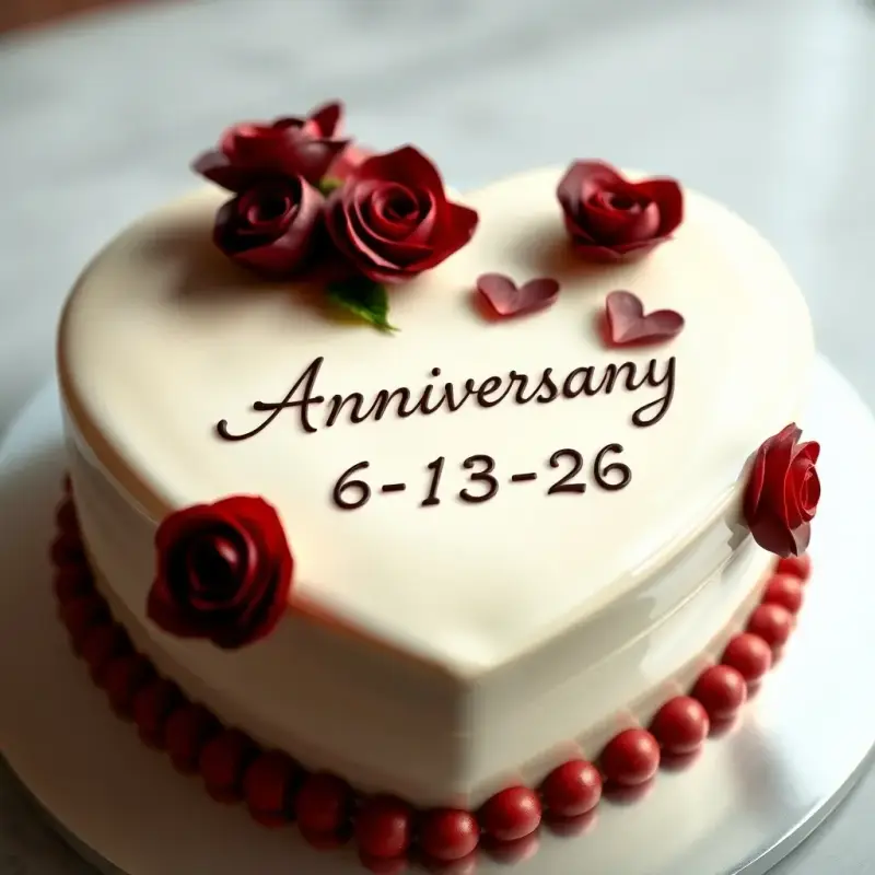 A heart-shaped cake is the ultimate symbol of love and affection. Customize it with a fresh floral arrangement or by adding the number of years you’ve been married or your wedng date, making it a heartfelt choice for any anniversary.