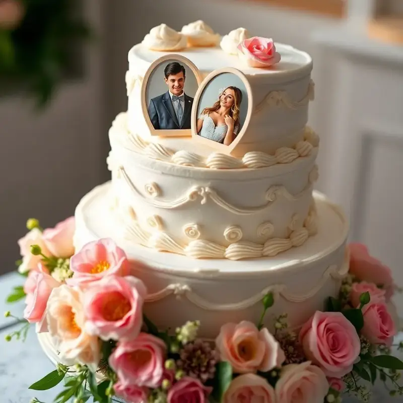 An anniversary cake provides space for creativity—consider adding small edible bride/goom photos taken on your wedding day. This creates a visual reminder of how your marriage journey began.