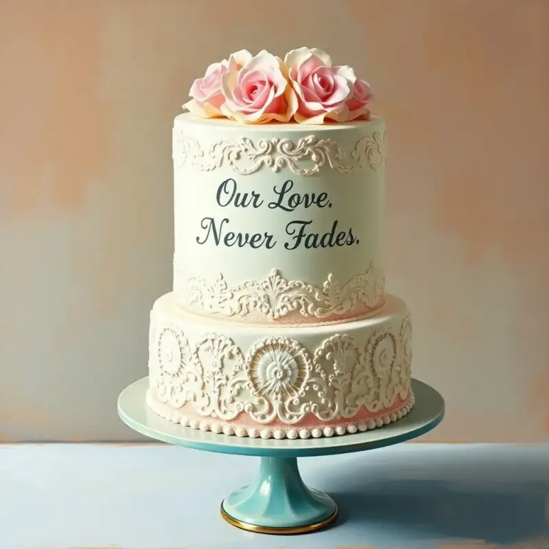 With soft pastel colors and a dreamy aesthetic, this cake captures the essence of love and cherished memories, making it a perfect centerpiece for a special anniversary celebration.