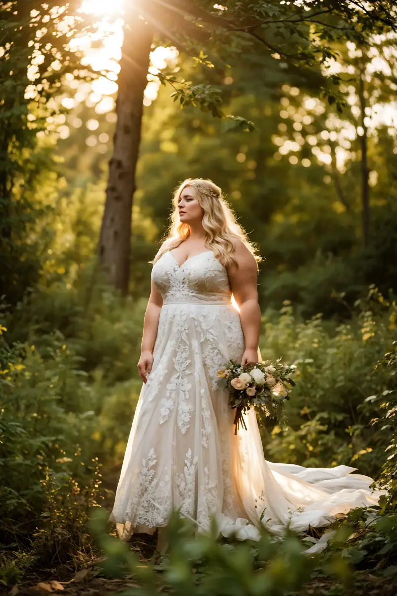 Celebrate your curves in this gorgeous plus size boho lace wedding dress. Designed for comfort and style on your special day.