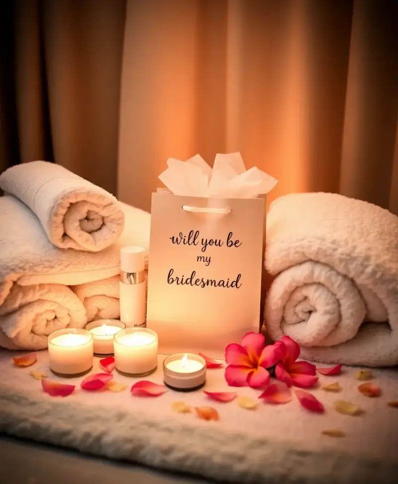 As you all unwind, present them with a gift bag containing a note asking them to be your bridesmaid along with a few spa goodies.