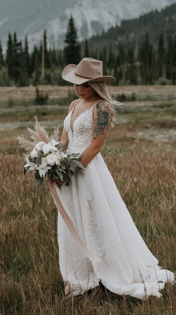 These incredible cowgirl wedding dress ideas blend boho charm with country style, offering inspiration for those dreaming of a wedding with a touch of rustic elegance. From cowboy boots to short, flowy dresses, find the perfect attire for your ranch wedding.