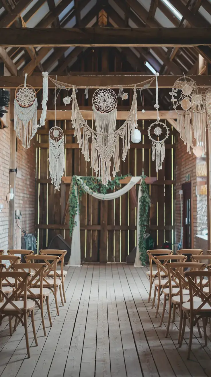 Dreamcatchers and macramé wall hangings are a great way to add boho flair to your rustic country wedding. Hang them above the dance floor, in the ceremony space, or in the reception area to create a whimsical, magical atmosphere.