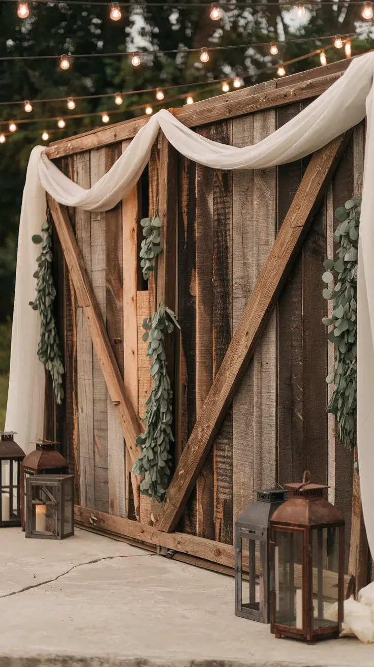 Perfect for outdoor weddings or rustic venues, a wooden arch decorated with greenery, draped fabric, or fairy lights creates a natural and intimate atmosphere.